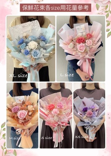 各款size的花材用量,花束實質大小因應不同款式會稍有不同!